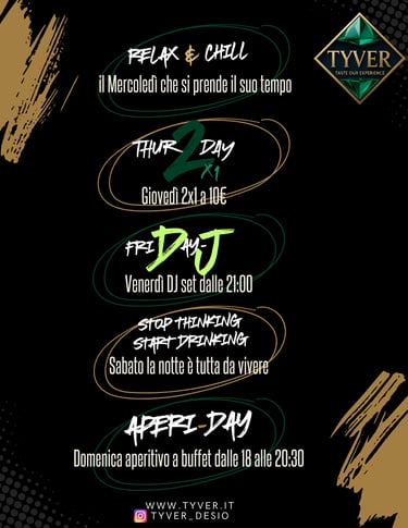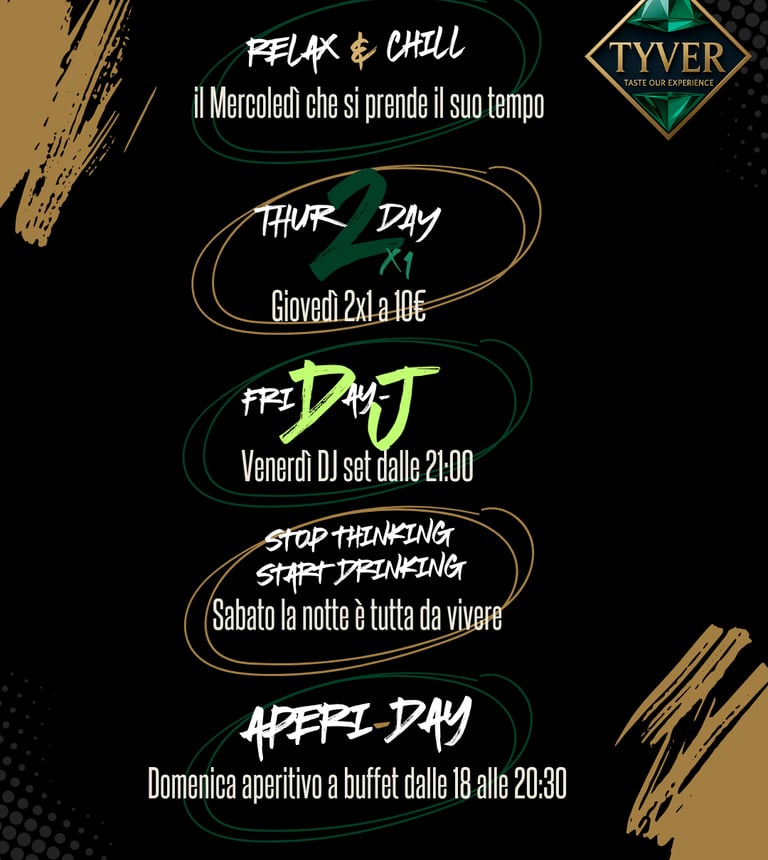 Partecipa agli eventi esclusivi targati Tyver o cotattaci per organizzane uno privato.